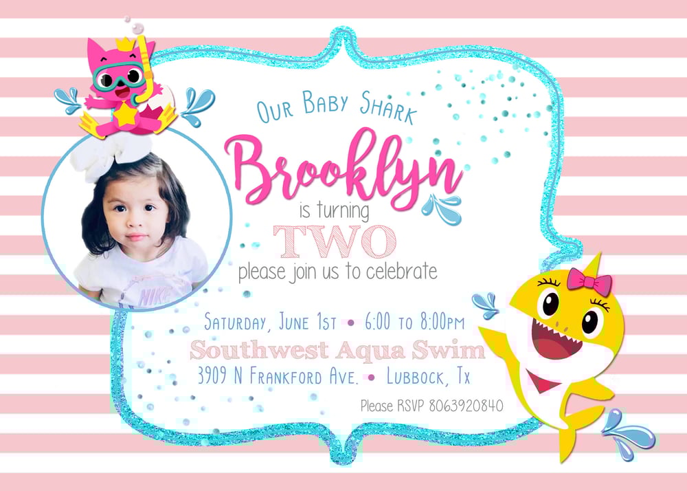 Baby shark birthday invitation with photo-Jul 03, · How To Use the Baby Shark Party Invitations Printable Okay, so it's pretty obvious how to use a party invitation, but I'll just explain that I have got two different designs, and both have the option to print as "You are invited to a Birthday Party" or You are invited to a Baby SharkThat's inspire me to design a free printable baby shark pinkfong invitation So if you want to celebrate your birthday party, you can download our free printable pinkfong Baby shark invitation